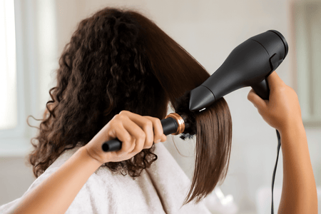 Korrekt teknik under föningen är avgörande för ett frissfritt resultat. Använd en koncentrator på din hårfön för att rikta luftflödet nedåt längs hårstråna. Detta hjälper till att släta ut fjällskiktet och öka glansen. Kombinera detta med en rund borste för att försiktigt dra håret stramt medan du torkar, vilket hjälper till med uträtning. Kombinationen av munstycke och borste säkerställer ett polerat utseende.