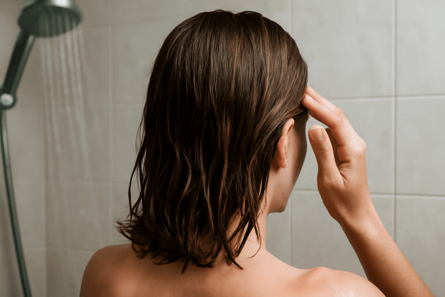 För att åtgärda detta är det fördelaktigt att använda ett schampo utformat för att minska beläggning och behålla balanserad volym. Vårt Grow and Glow schampo är sulfat- och silikonfritt, vilket hjälper till att rena ditt hår utan att ta bort dess naturliga oljor. Detta kan hjälpa till att uppnå ett mer enhetligt utseende över båda sidor av ditt huvud.