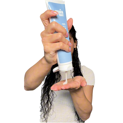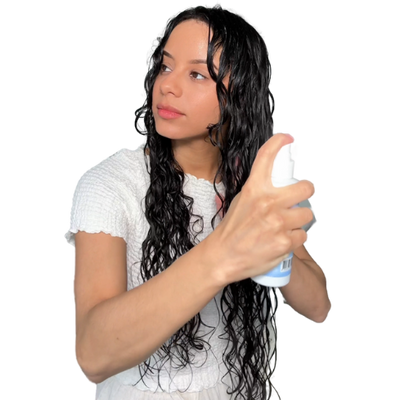 Skaka Saltvattensprayen och spraya på fuktigt hår