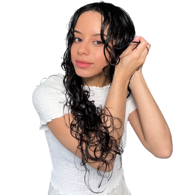 Fördela Lockkräm i handflatorna och gnugga in den i hårets längder