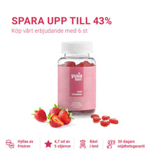 Ingredienser: Sötningsmedel (Matitol, Isomalt), förtjockningsmedel (pektiner), syra (citronsyra), vitamin E (DL-alfa-tokoferylacetat, bambuextrakt (Bambusa vulgaris), vitamin C (L-askorbinsyra), surhetsreglerande medel (natriumcitrater), zink (zinkcitrat), naturlig jordgubbssmak, vitamin A (retinylacetat), Pantotensyra (kalcium-D-phantothenat), plamolja, ytbehandlingsmedel (karnaubavax), biotin (D-biotin), vitamin D (ergokalciferol), koncentrerad lila morotsjuice, vitamin B6 (pyridoxinhydroklorid), vitamin B12 (cyanokobalamin), jod (kaliumjodid), folsyra (pteroylmonoglutaminsyra), kolin (kolinbitart), inostiol..